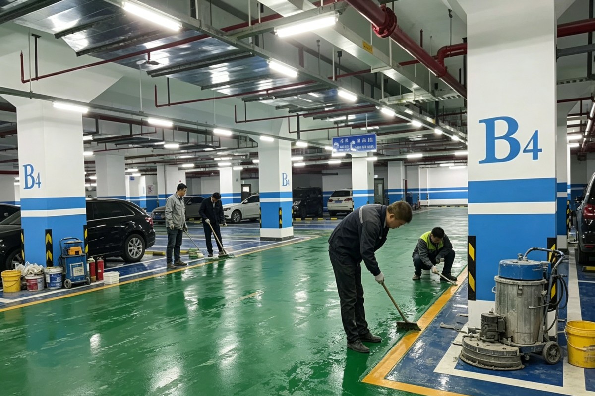 保定北市五四路街道车库停车场环氧地坪施工厂家